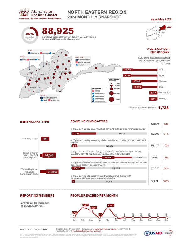 AFG NORTH-EASTERN Region ES-NFI Cluster HRP Dashboard JAN-MAY 2024