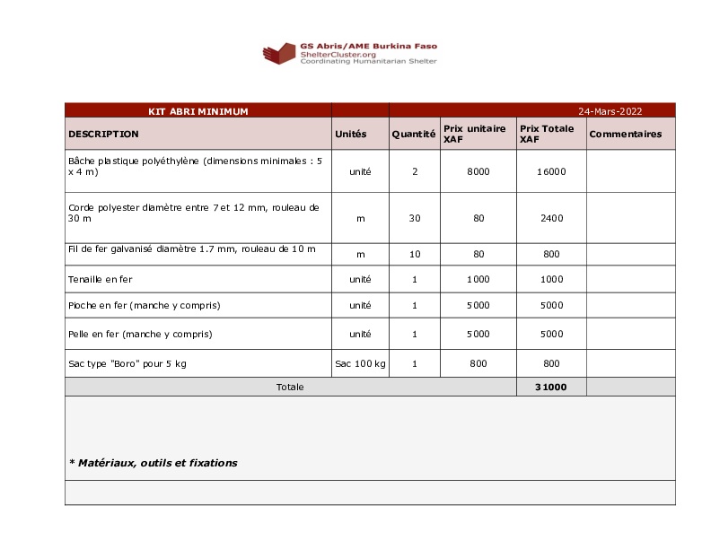 Shelter Cluster Burkina Faso