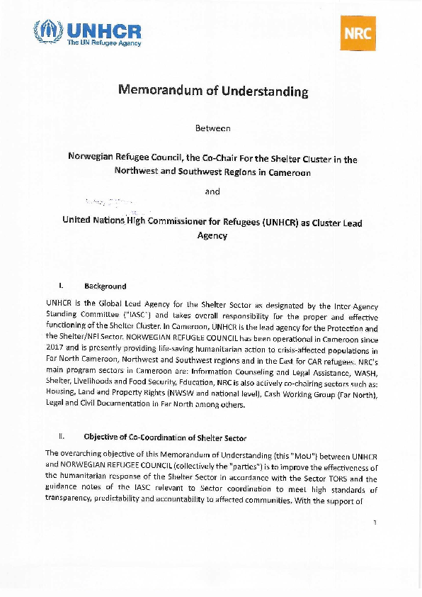 CMR_SNFI_Memorandum of Understanding UNHCR-NRC Co-Facilitation 2024