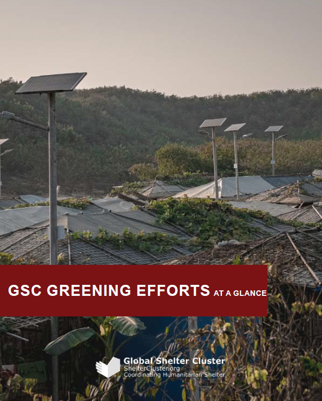 Since 2021, the Global Shelter Cluster’s efforts have been supported by ECHO, USAID-BHA, UNHCR, IFRC and other partners, underlining the collectiveness of efforts towards greener humanitarian shelter and settlements responses. The GSC, among other activities that are being implemented both at country and global level, has: