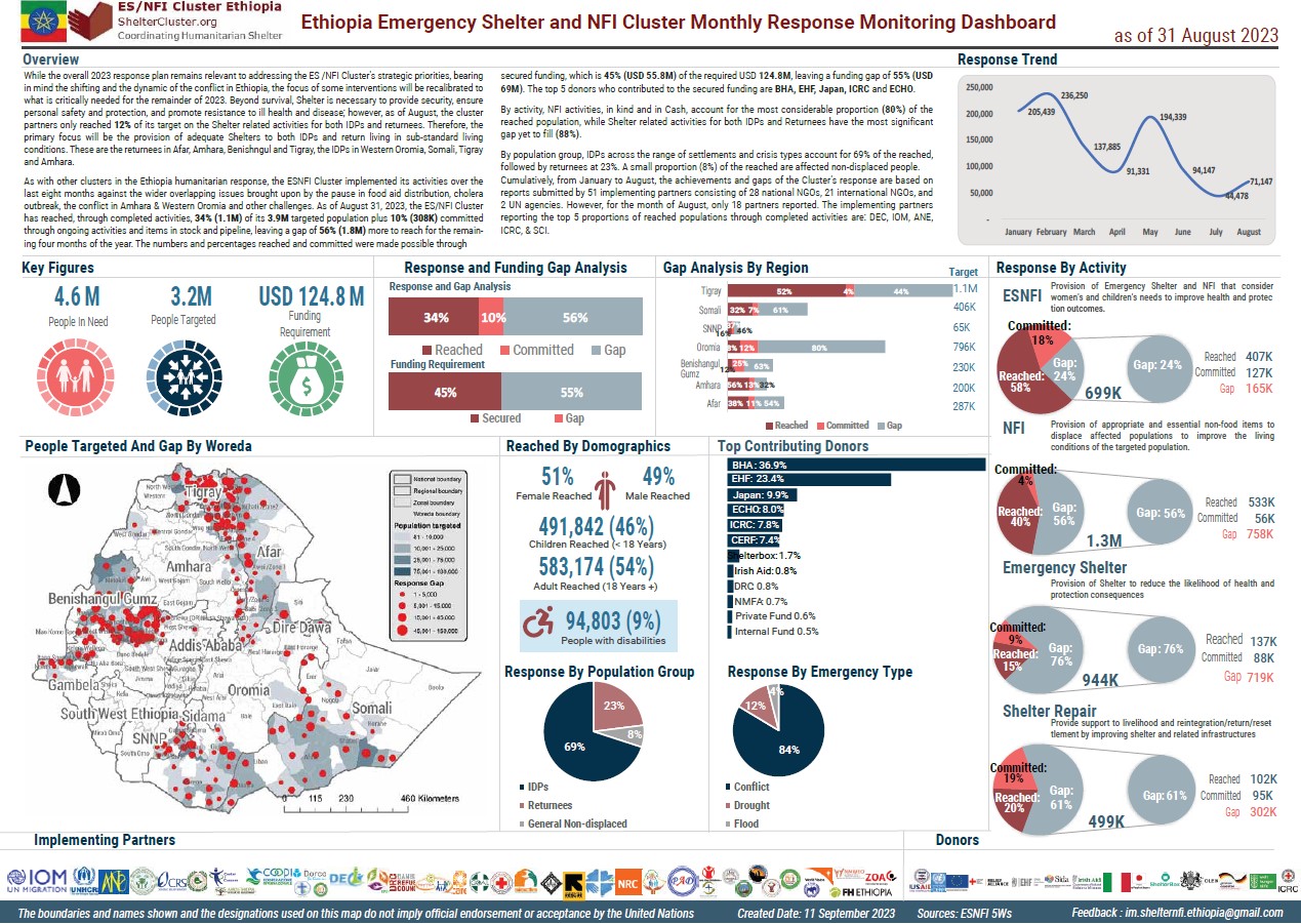 Ethiopia Emergency Shelter & NFI Cluster Monthly Response Monitoring Dashboard as of August 31 2023