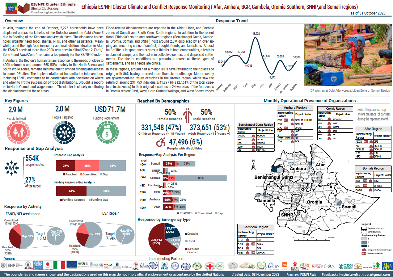 Ethiopia ESNFI Cluster Climate and Conflict Response Monitoring ( Afar, Amhara, BGR, Gambela, Oromia Southern, SNNP and Somali regions) as of October 31 2023
