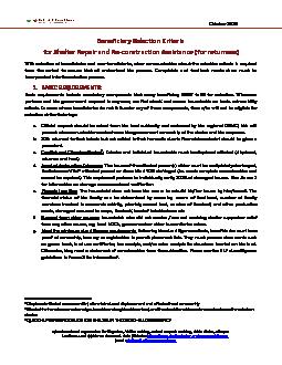 Beneficiary Selection Criteria for Shelter Repair and Re-construction Assistance (for returnees)