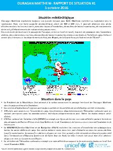 Ouragan Matthew - Rapport de Situation #1 - UNICEF