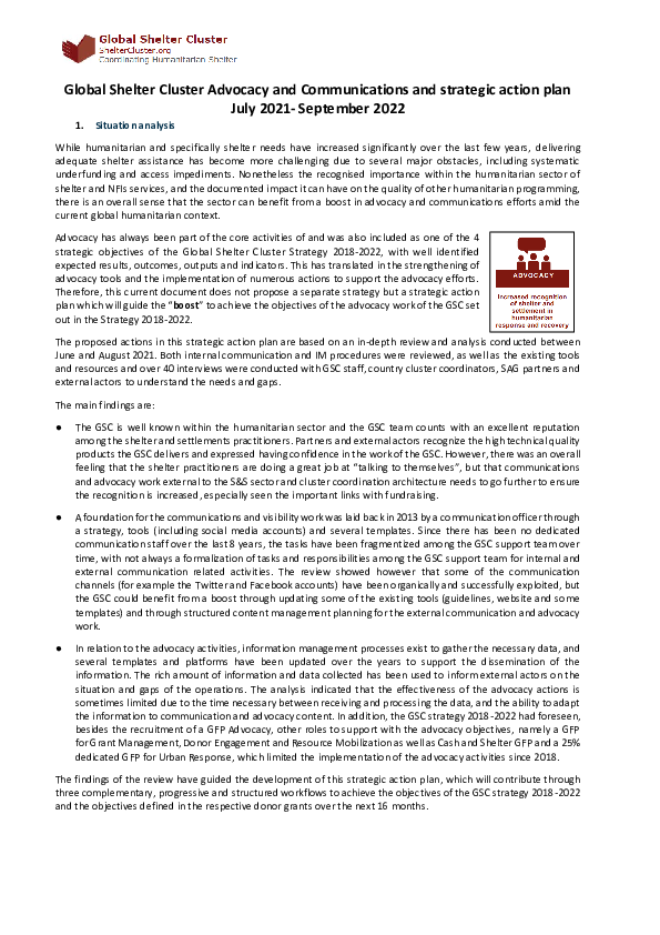 Advocacy and communication strategic action plan 2021-2022 detailing the advocacy and communication main workflows for the GSC.