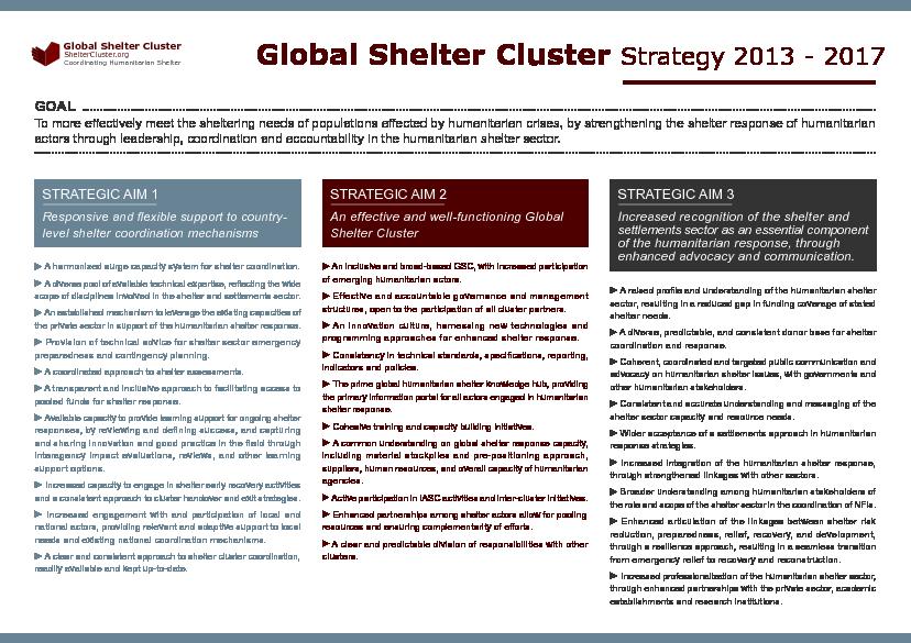 Overarching strategy of the Global Shelter Cluster. Approved by the GSC during its meeting on 1-2 November 2012.
