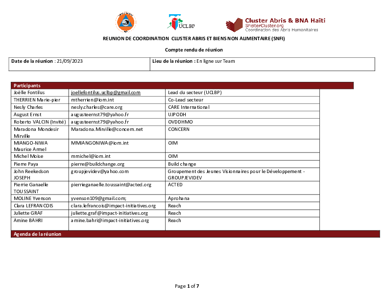 - Discussion sur la réponse du cluster pour 2024 ( Plan de réponse humanitaire)