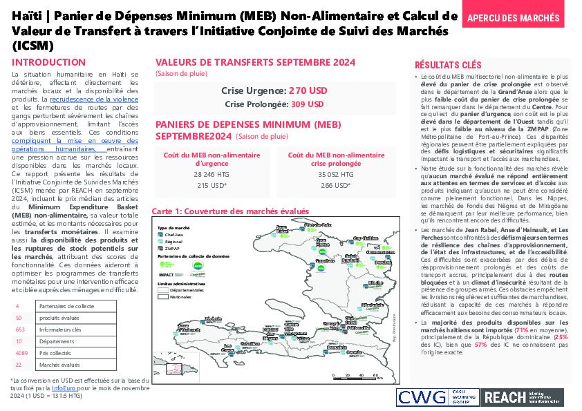 Haïti | Panier de Dépenses Minimum (MEB) Non-Alimentaire et Calcul de APERCU DES MARCHÉS Valeur de Transfert à travers l’Initiative Conjointe de Suivi des Marchés (ICSM)