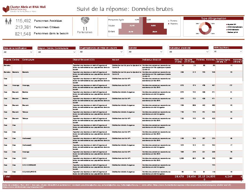 Dashboard Semestriel des Réalisations du Cluster Abris et Biens Non Alimentaires