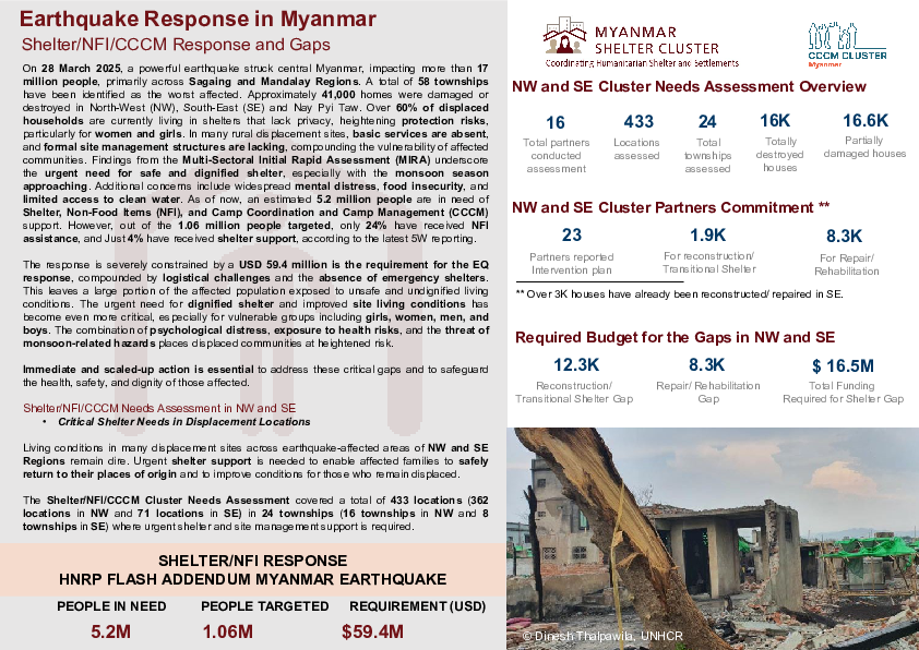 Shelter/NFI/CCCM_Advocacy Messages-Earthquake Response in Myanmar