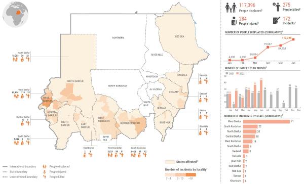 So far, 117,396 people have been internally displaced by intercommunal violence, mainly in West Darfur (76%) while 28,386 refugees and asylum seekers arrived in the country, mostly from South Sudan.