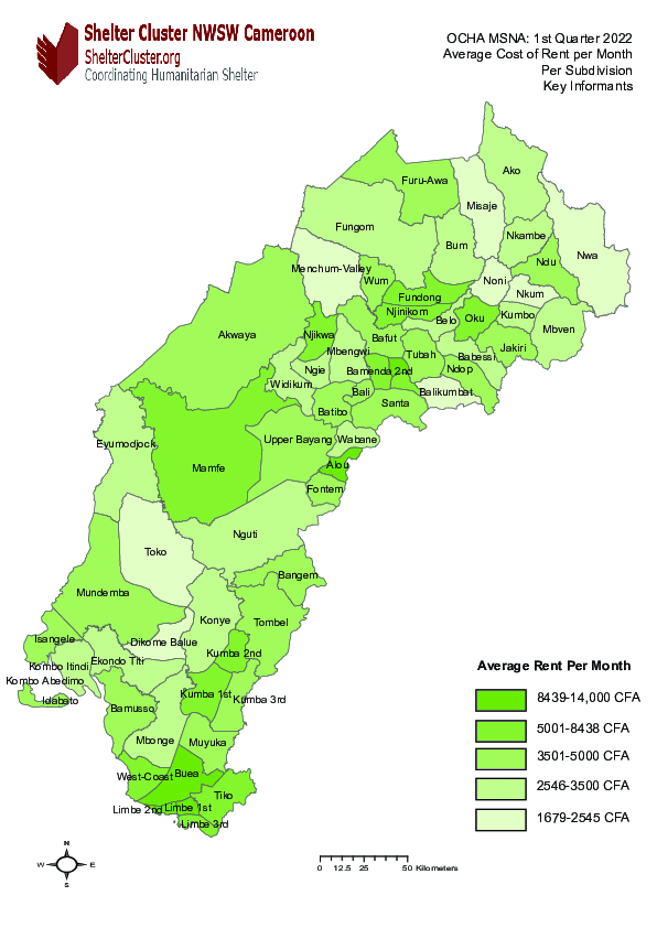 Average Cost of Rent per Subdivision Northwest Southwest Cameroon
