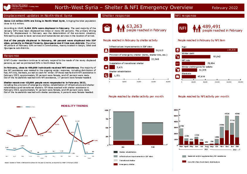 North-West Syria Shelter/NFI Cluster monthly factsheet.