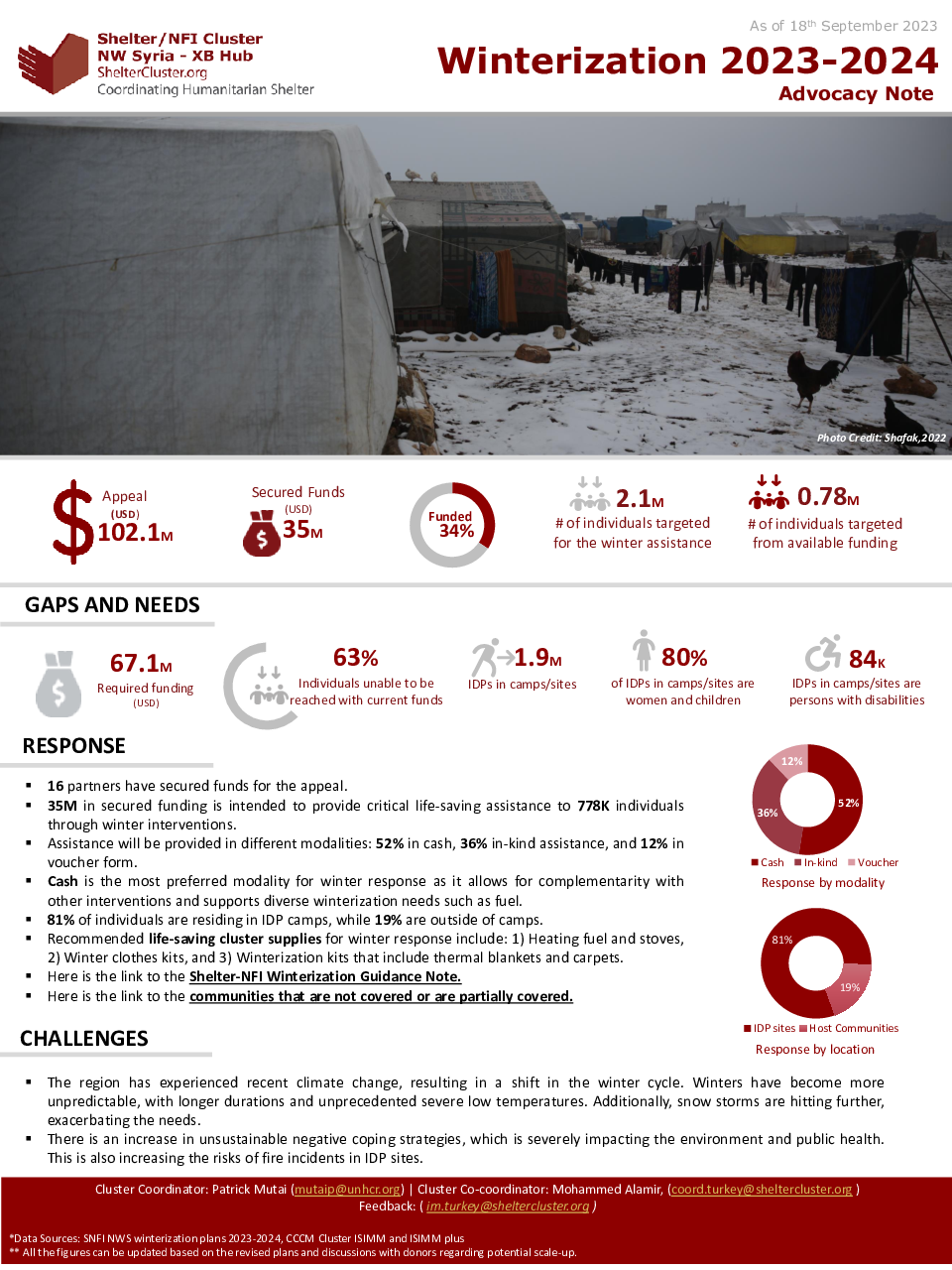 This Winterization Advocacy Note 2023-2024 sheds light on the critical winterization efforts underway to provide essential support to people in need in the North-West Syria (NWS).
