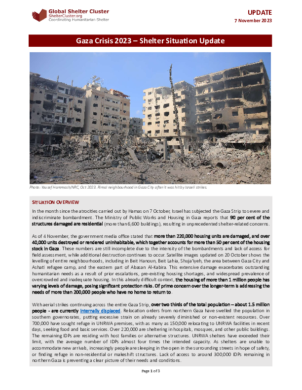 Gaza Crisis Response 2023 Shelter Update 7 Nov