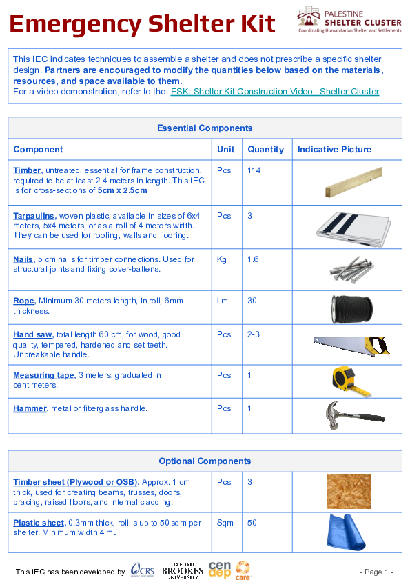 Shelter Cluster Palestine, CRS, CARE, Oxford Brookes University