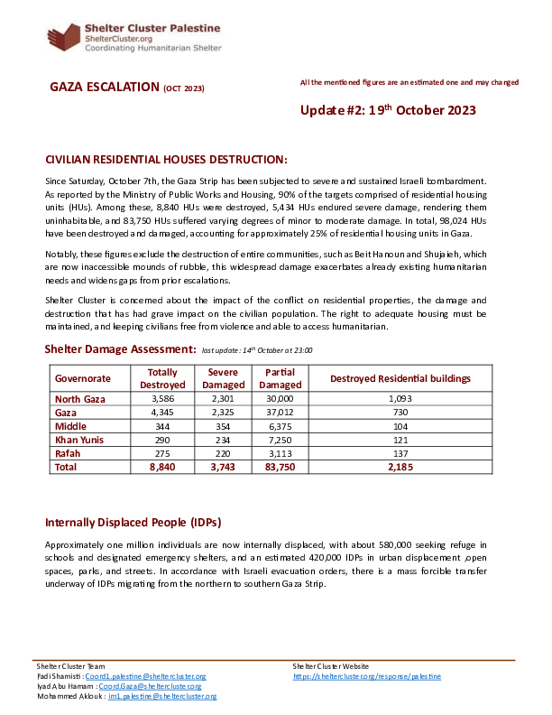 Shelter Cluster Update 2 Gaza Escalation 19 Oct 2023