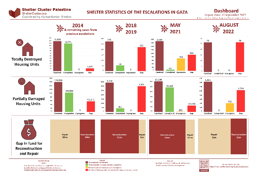 Out of 13,788 housing units totally destroyed since 2014, around 2,200 units are yet to be funded for reconstruction, including at least 1,000 vulnerable families still internally displaced since May 2021, and in urgent need for Transitional Shelter support.