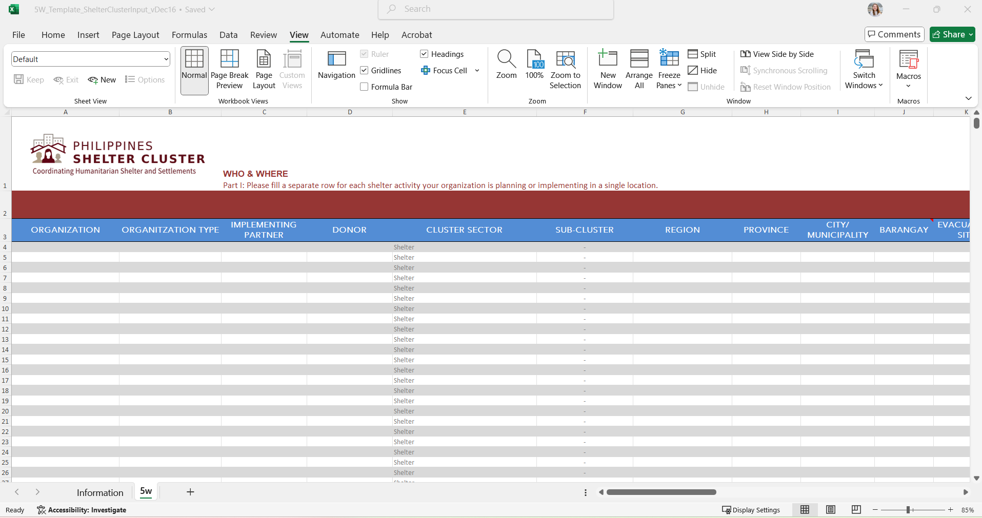 This is the revised version of the 5W form (version Jan 7), which we invite you to fill in on behalf of your organization. By providing this information, you contribute to improving the clarity and effectiveness of Shelter activities in the 2024 Typhoon and Flood Response.