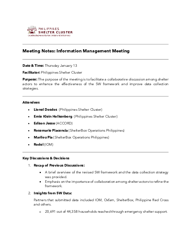 Notes of PSC IM Meeting on HNP Indicators and Data Collection 16 Jan