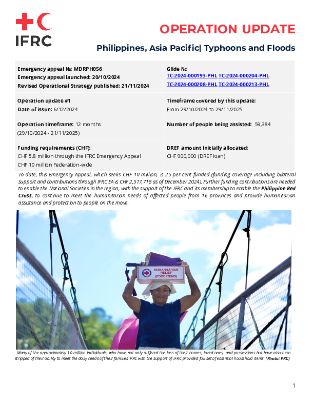 Philippines, Asia Pacific - Typhoons and Floods - Operation update #1 (MDRPH056)