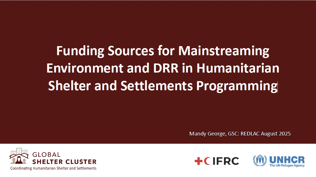 The Environmental Community of Practice is a venue to support the exchange of information related to the greening of shelter responses in disaster.