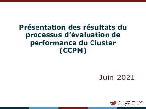 Le present document présente les résultats des contributions des partenaires au processus d'évaluation des performances du Cluster qui a eu lieu entre le mois de Mai et Juin 2021.