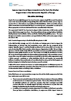 Executive Summary DR Congo Cash and Shelter Lessons Learned