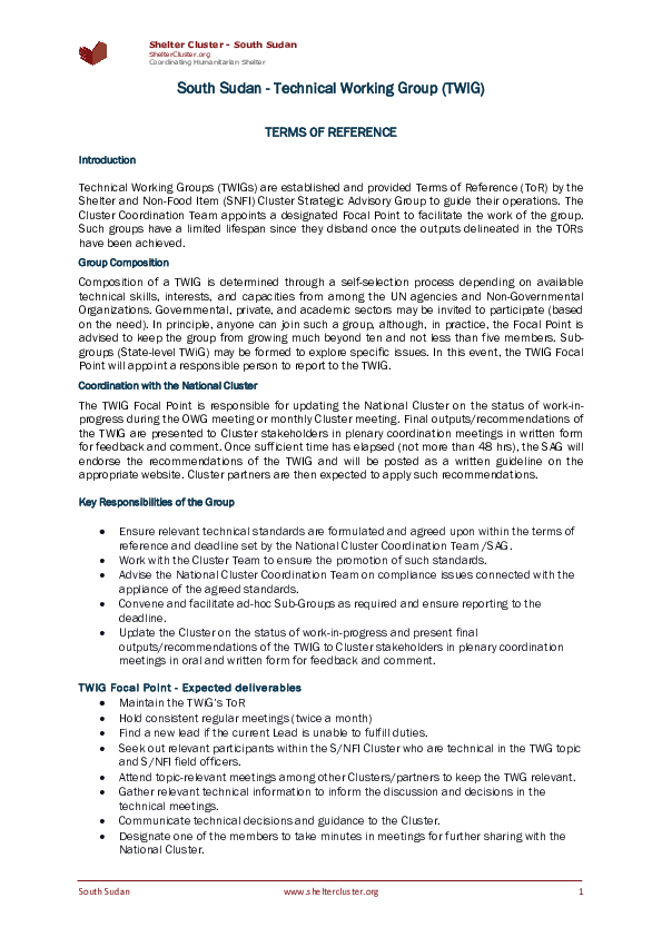 South Sudan SNFI ToR TWiG - Sudan Returnee Response