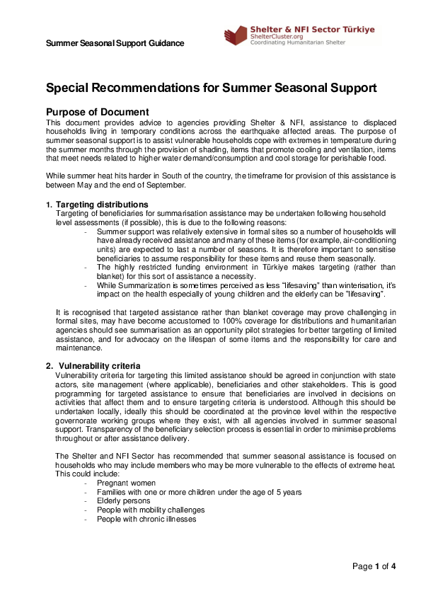 Special Recommendations for Summer Seasonal Support