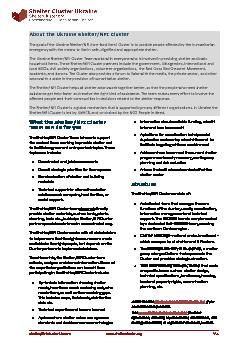 The Shelter/NFI Cluster is a global mechanism that is supported by many different organizations. In Ukraine the Shelter/NFI Cluster is led by UNHCR, and co-chaired by the NGO People in Need.