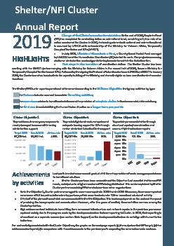 2019 marked the sixth year of armed conflict in eastern Ukraine. The response by shelter and NFI humanitarian agencies developed around the same activities as in the previous year. The Shelter/NFI Cluster reports achievements according to the 3 operational Cluster Objectives. Operational Cluster Objectives group activities by type: the first one includes core and immediate life-saving activities; the second one relates to transitional solutions and the provision of adequate shelter in the absence of durable solutions; the third one aims at stabilizing the humanitarian situation on a longer-term perspective