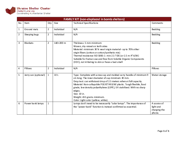 Ukraine-NFI Kits FAMILY KIT (non-displaced in bomb shelters)