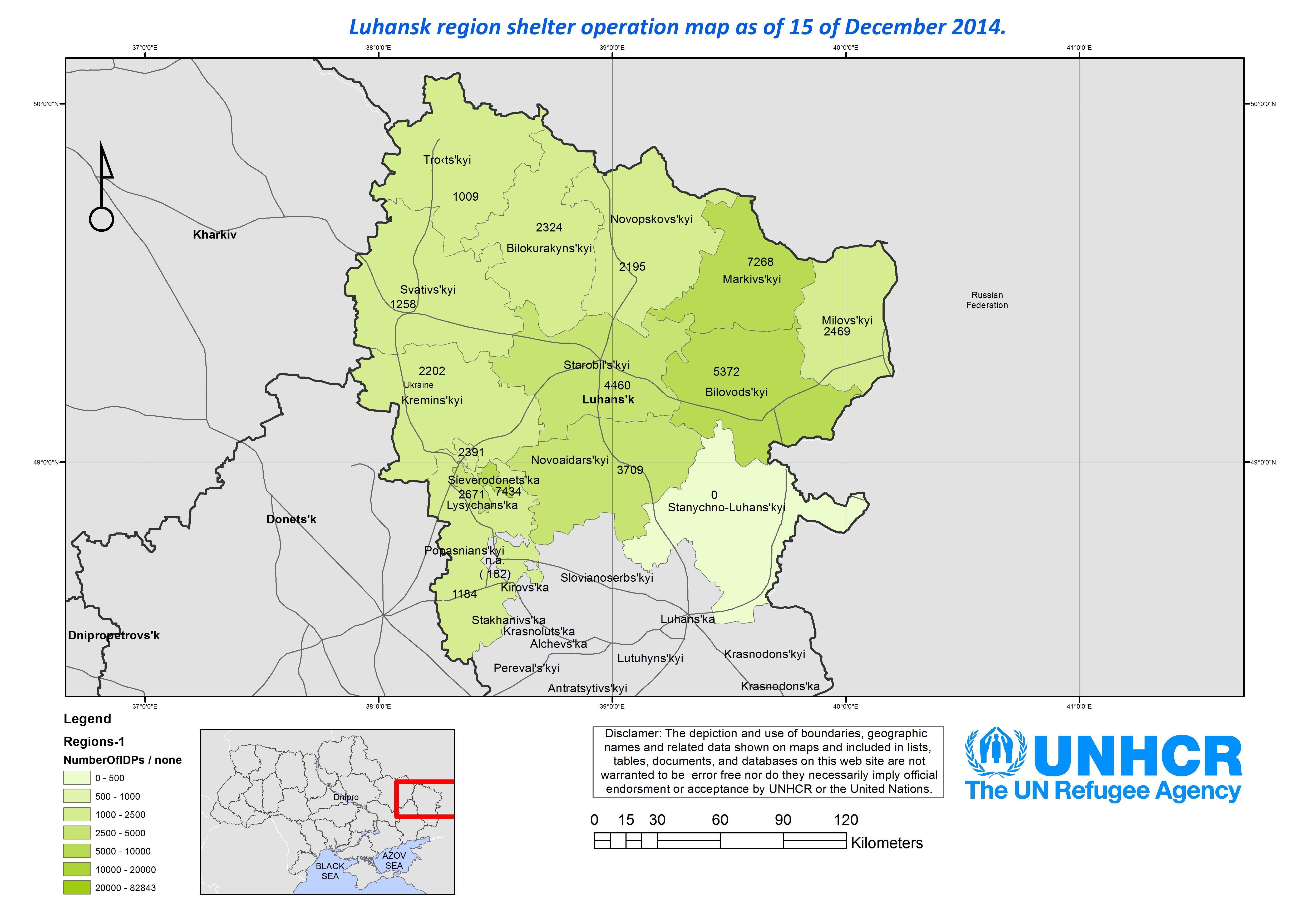 Luhansk region shelter operation map as of 15 of December 2014