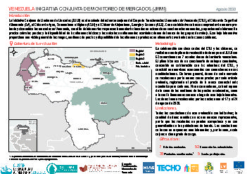 La Iniciativa Conjunta de Monitoreo de Mercados (JMMI) es el resultado del esfuerzo conjunto del Grupo de Transferencias Monetarias de Venezuela (GTM), el Clúster de Seguridad Alimentaria (SA), el Clúster de Agua, Saneamiento e Higiene (ASH) y el Clúster de Alojamiento, Energía y Enseres (AEE). Con esta iniciativa se busca comprender de manera profunda y sistemática las dinámicas económicas de los mercados en Venezuela, con el fin de informar las respuestas humanitarias, incluyendo también el costo de los artículos no alimenticios incluidos en los kits.