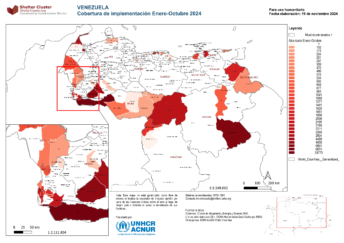 Mapa de Cobertura de Implementación del Clúster de Alojamiento, Energía y Enseres en Venezuela Enero-Noviembre 2024