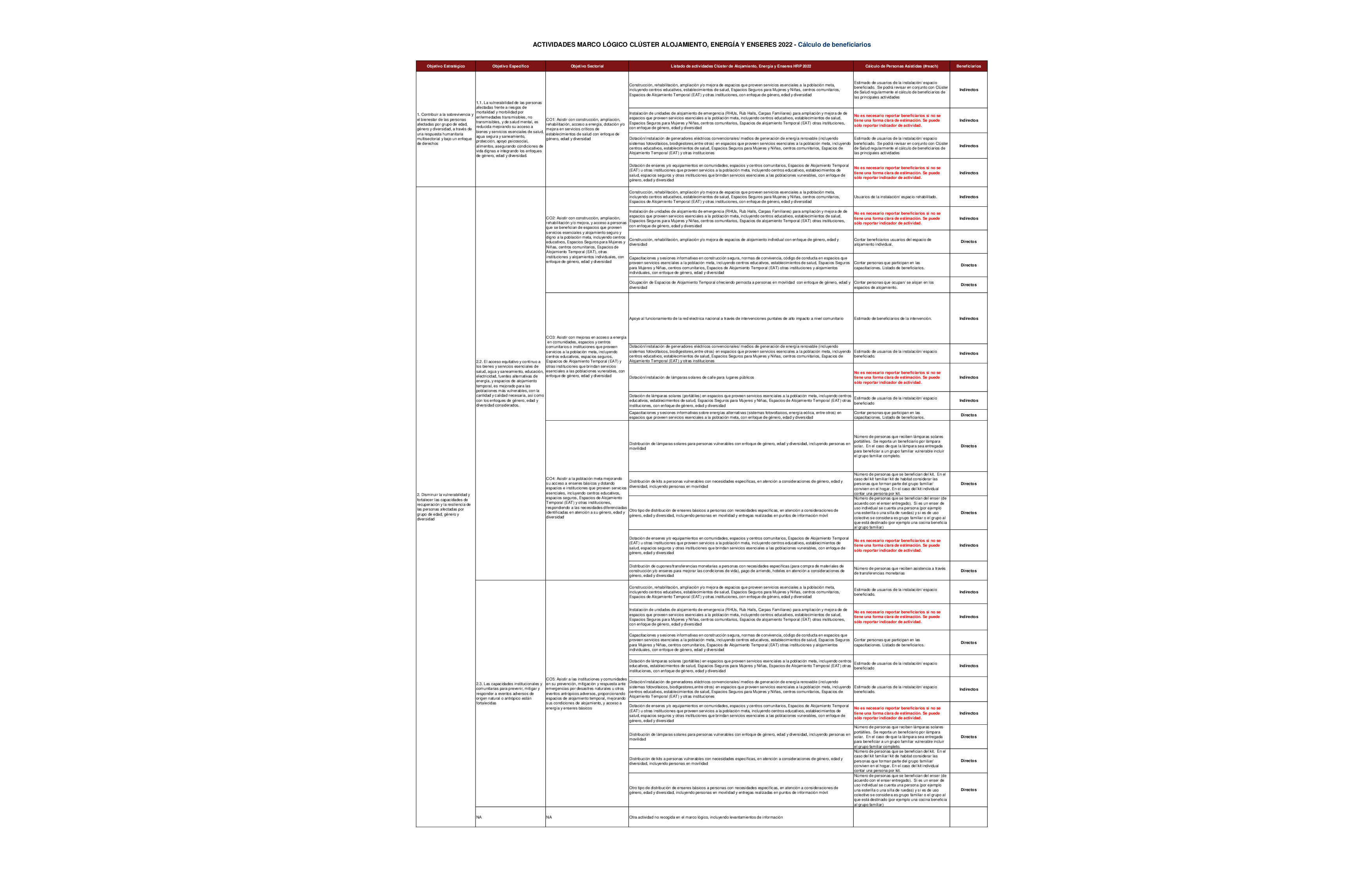 Marco Lógico y Beneficiarios Clúster de Alojamiento Energía y Enseres