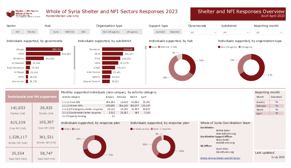 Whole of Syria Shelter/NFI Sectors Response Snapshot - As of April 2023