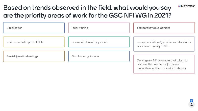 Global Shelter Cluster NFI WG 2021 Planning Mentimeter Responses