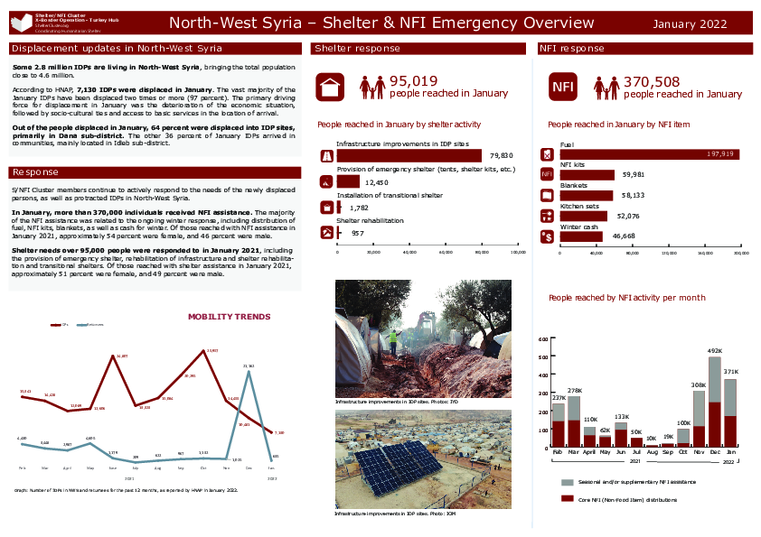 North-West Syria Shelter/NFI Cluster monthly factsheet.
