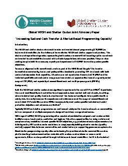 The Shelter and Cash Working Group was started in 2015 to work on the preparation of the GSC position paper and to conduct the shelter/cash literature review. Since then – and with support from the GSC ECHO grant in 2017/18 – the CWG has worked on a number of priority areas under the banner of the ‘cash champions’ initiatives. These activities include;