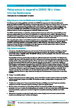 Policy advice to respond to COVID-19 in Urban Informal Settlements - Prepared for the Government of Kenya- Key Messages