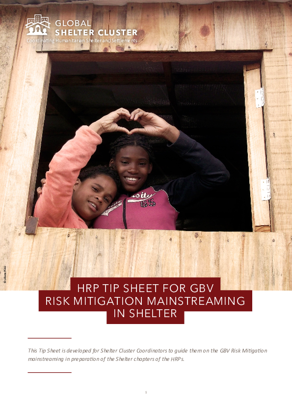 This Tip Sheet is developed for Shelter Cluster Coordinators to guide them on the GBV Risk Mitigation mainstreaming in preparation of the Shelter chapters of the HRPs.