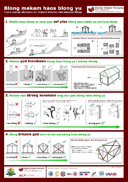 Member organisations consist of Government agencies, UN agencies, Red Cross, donors, local and international non-government organisations (NGOs), and civil society groups involved in shelter. Some member organisations only have a presence in Vanuatu during disaster response, but will be kept informed of cluster activities, meetings and decisions electronically and through the Vanuatu Shelter Cluster webpage.
