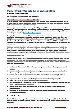 The Cluster coordinates a coherent and effective humanitarian shelter response following disaster events, as for TC PAM in 2015, TC Donna in 2017, the Ambae Volcano crises in 2017 and 2018, TC Harld (2020), TC Judy & Kevin and TC Lola in 2023. It has as well continued preparedness activities in collaboration with other clusters, government agencies and stakeholders.