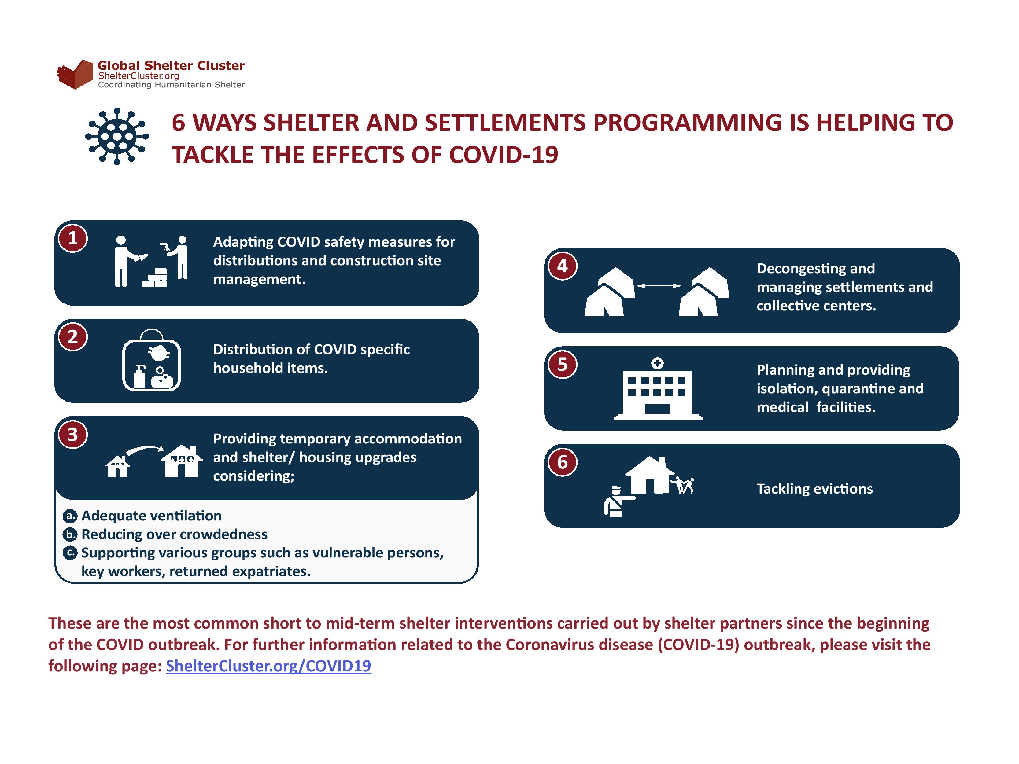 During a disaster response, VRCS through the Global Shelter Cluster Support Team provides surge coordination capacity as requested by the Lead Agency, to the extent required and possible within available resources.