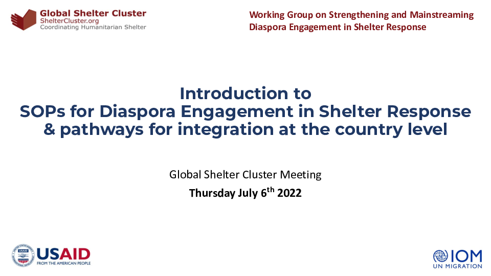 Introduction to SOPs for Diaspora Engagement in Shelter Response & pathways for integration at the country level