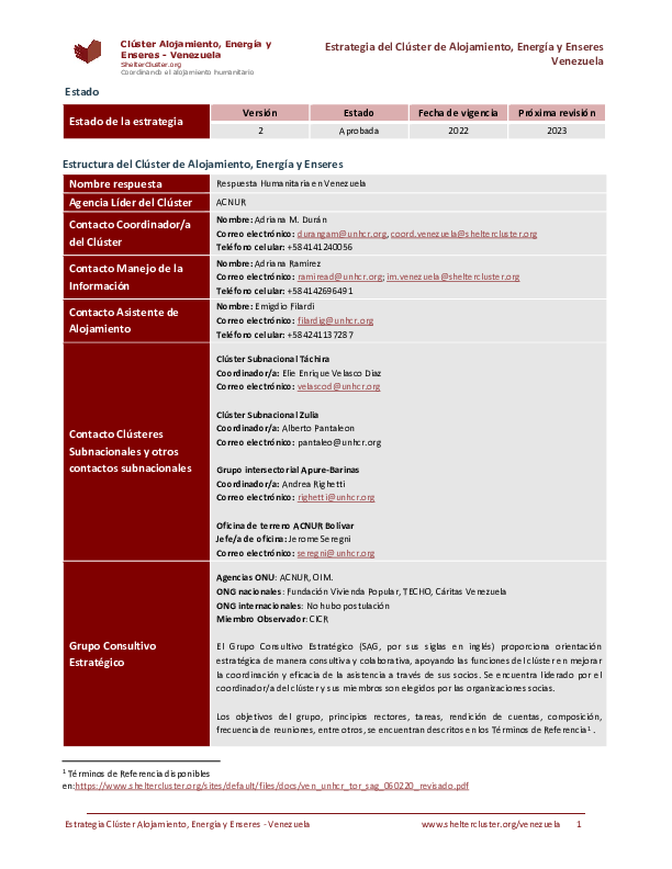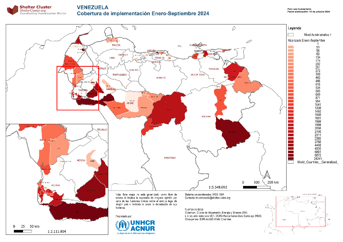 The Shelter, Energy and NFI Cluster developed the following online map of temporary shelters in Venezuela to support a more efficient, effective, and coordinated humanitarian response of partner organisations working in the field. The following map and data are available for humanitarian use only. Link to access the full version of the tool: https://bit.ly/ClusterAlojamiento_espacios