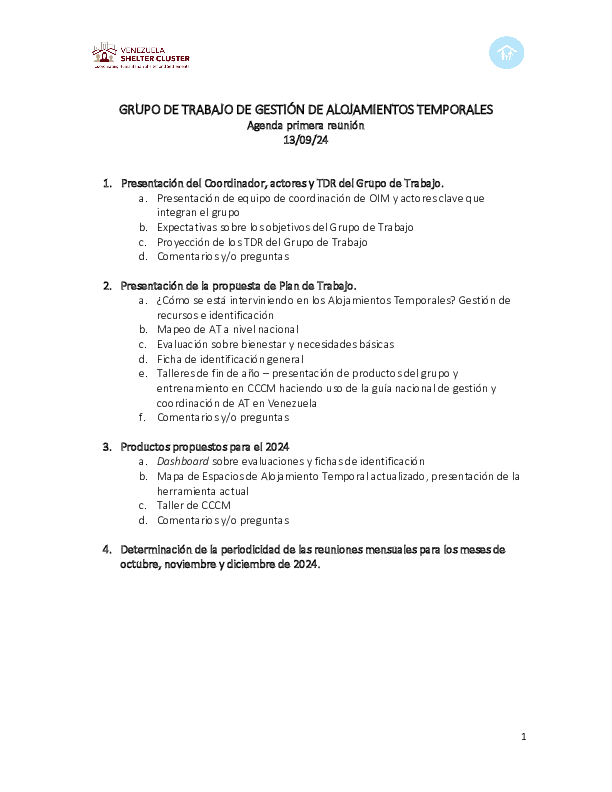 Grupo de Trabajo de Gestión de Alojamientos Temporales