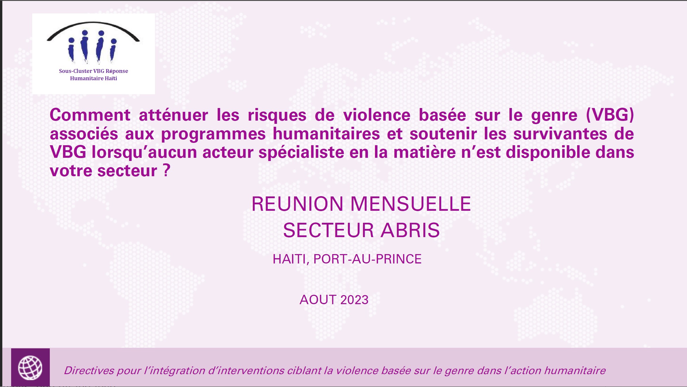 - Le Pocket guide GBV sur le site https://gbvguidelines.org/fr/ et sur Google play(GBV Pocket guide) afin de télécharger dans leur téléphone mobile.